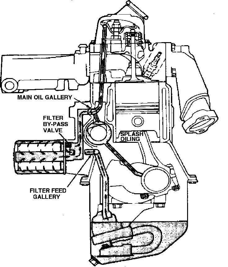 Typical engine oiling system: