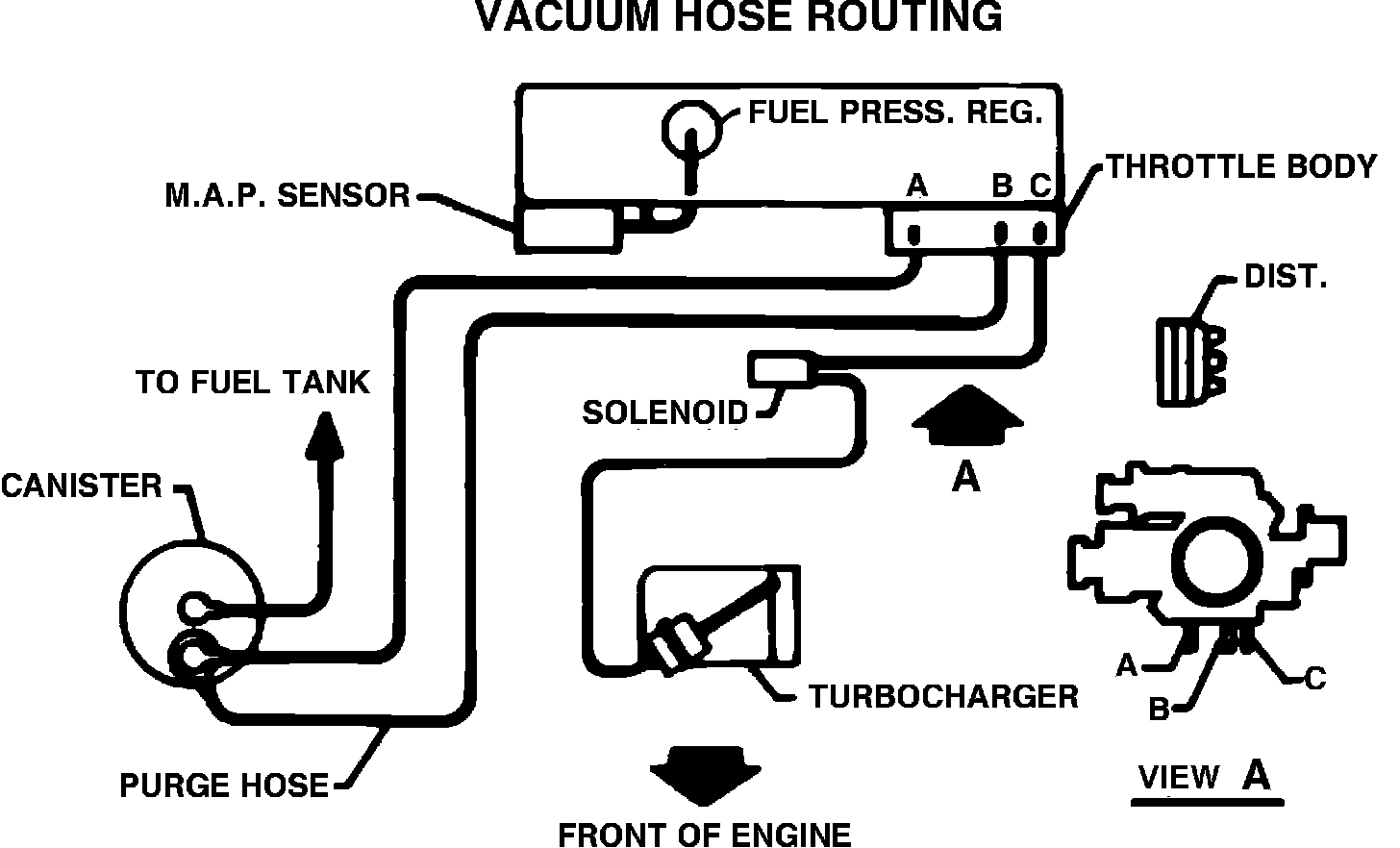 Fig. 5 Vacuum Hose Routing. 4-110 Diesel (Vin D):