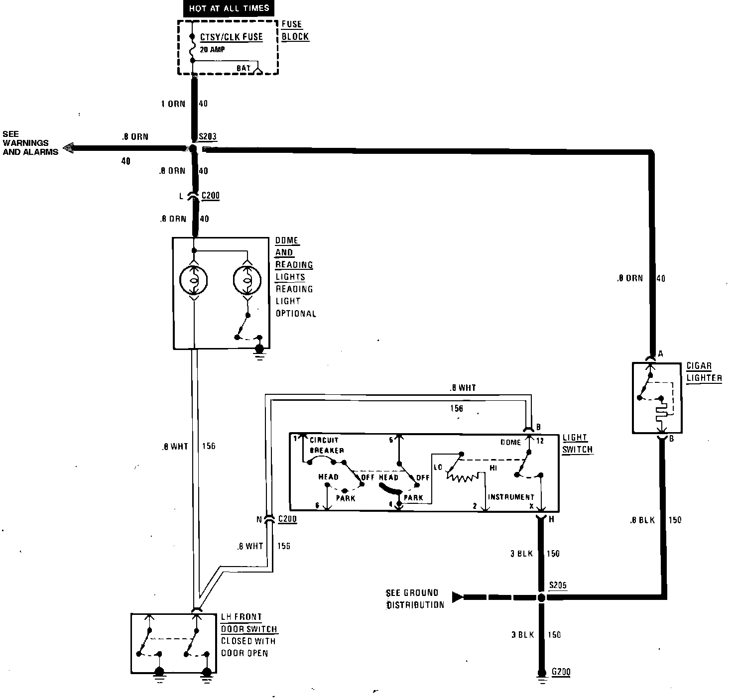 Cigar Lighter, Dome & Reading Lamps Wiring Circuit: