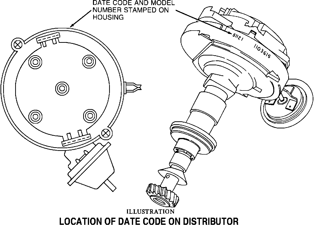2. Check the distributor for the manufacturer's date code located just below the distributor cap on rim of base (See Illustration). If date code is 5L27 proceed to Step 3. All others, no repair required, proceed to Step 7.