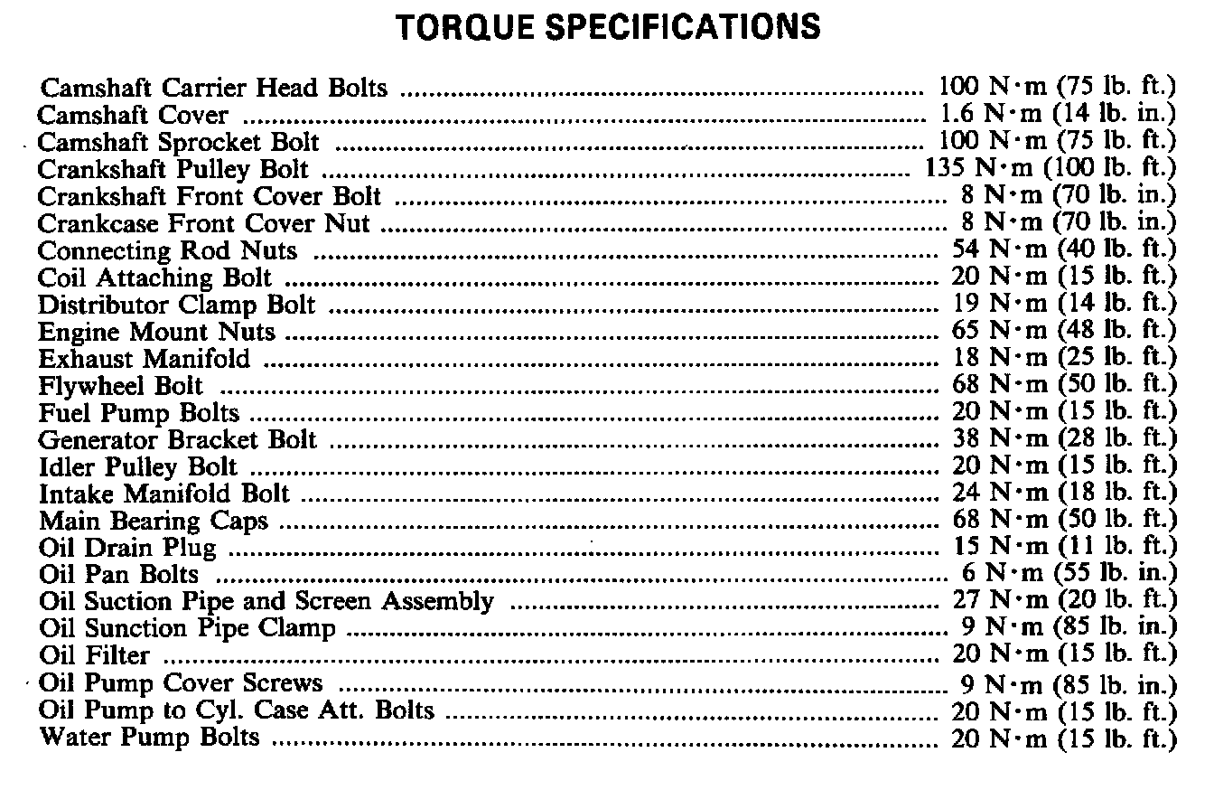 Torque Specifications: