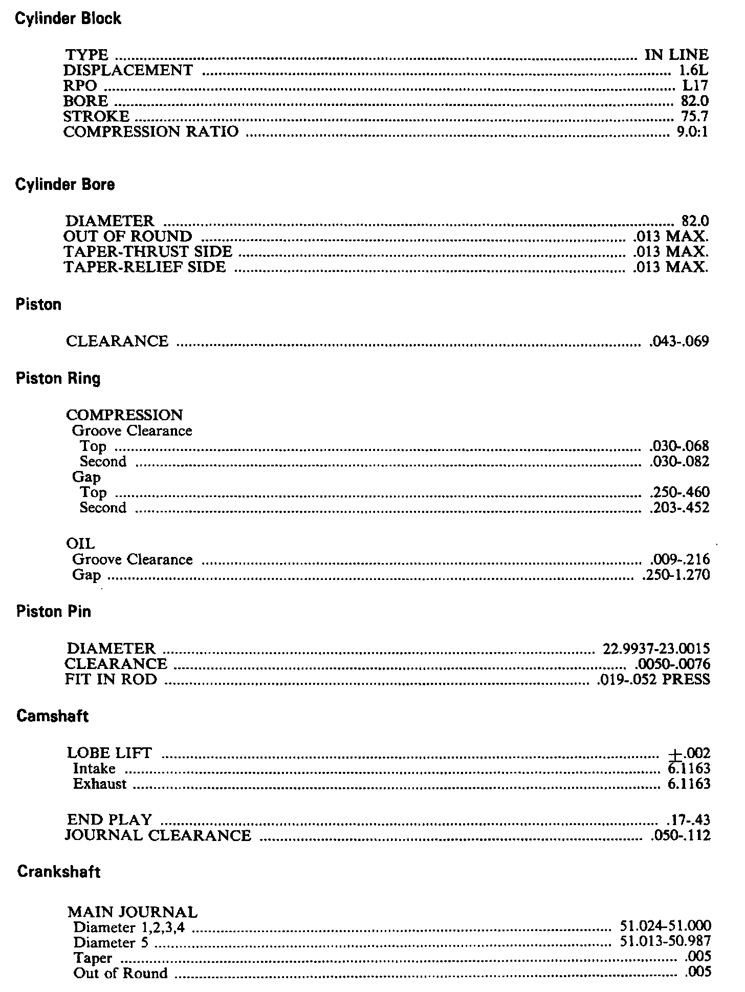 Chevette L4-98 1.6L