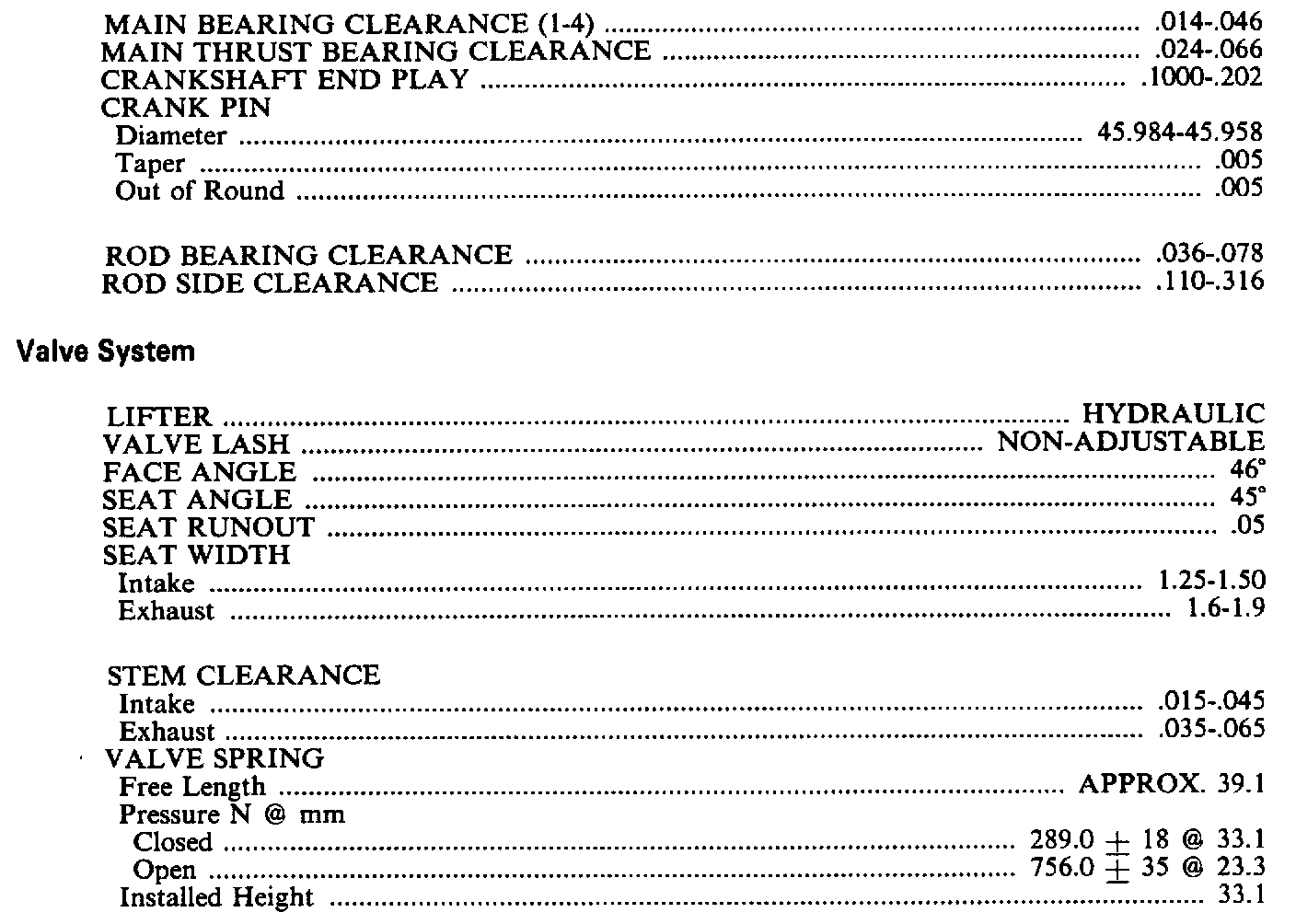 Engine Specifications: