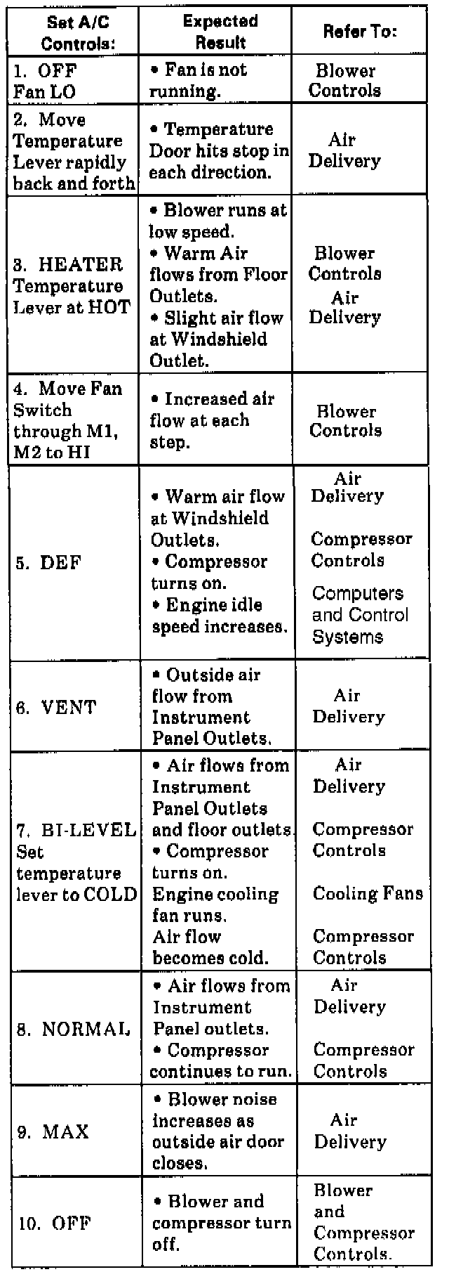 This procedure provides an overall check of the air conditioning system. All of the tests can be performed without using tools or disassembly.