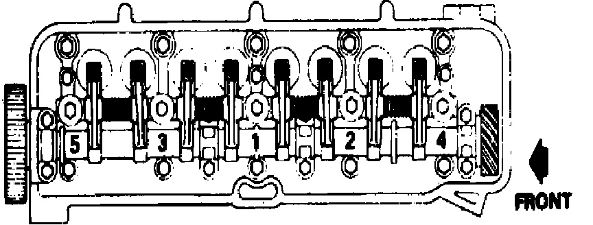 2. Loosen each rocker support bolt a little at a time and in sequence shown in Fig. 6.