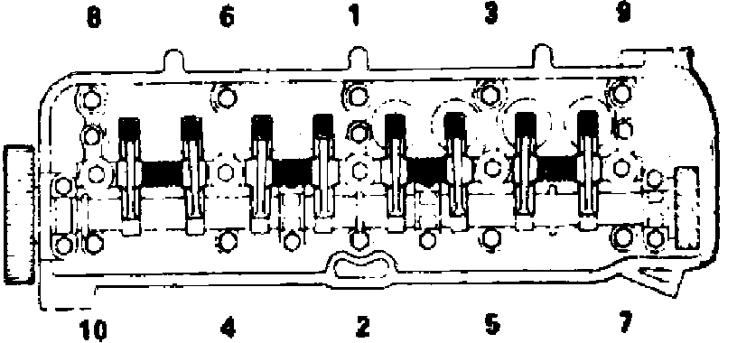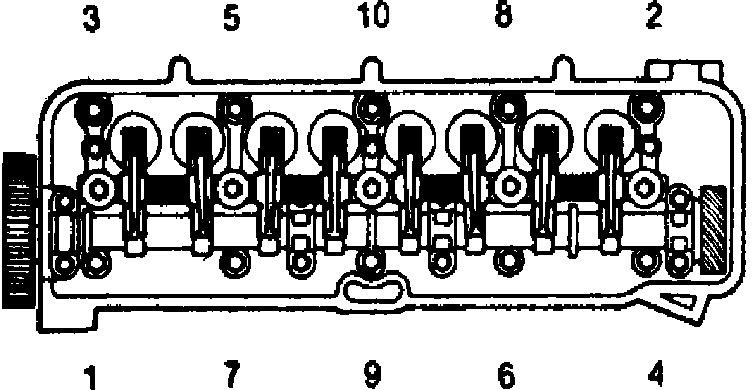 Fig. 2 Cylinder head bolt tightening sequence. Exc. 16 valve engine: