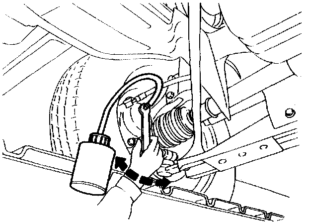 NOTE: If brake fluid does not come out while bleeding each caliper in the order listed above, the master cylinder may contain air in its bore. First bleed the master cylinder as described in Steps 6 through 16.