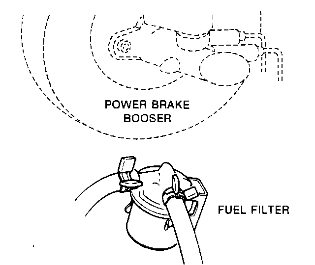 The fuel filter is located under the Power Brake Vacuum Booster.