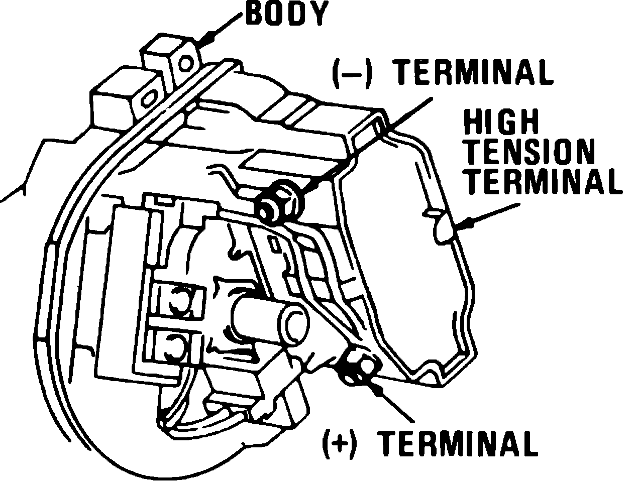 a. With ignition switch in OFF position, disconnect wire terminal from coil and measure resistance between (+) terminal and body.