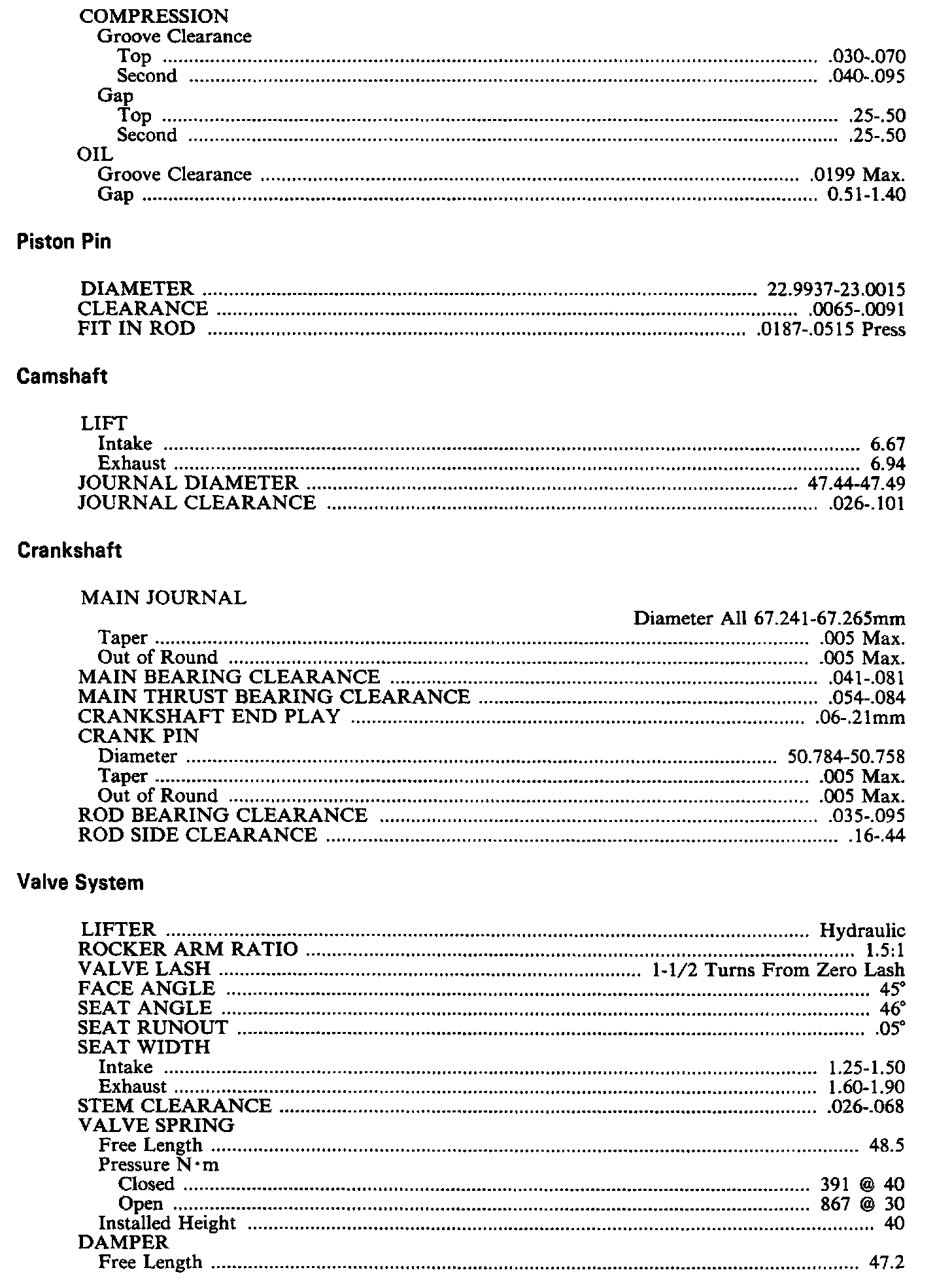 Continued Engine Specifications: