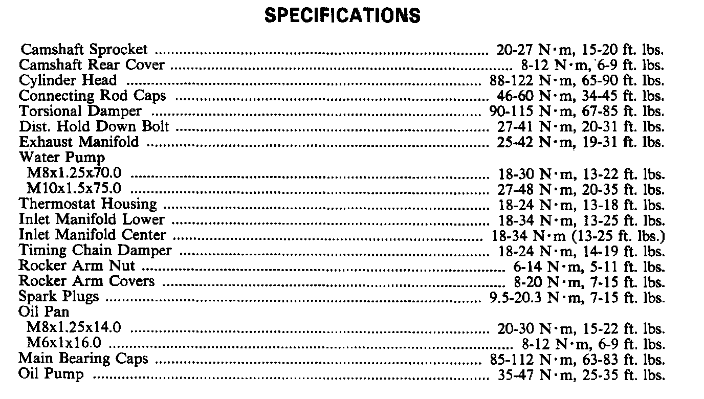 Torque Specifications: