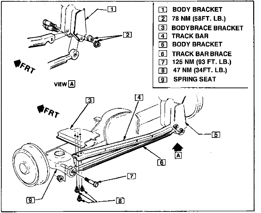 5. Remove nut and bolt from body bracket, then remove track bar brace.