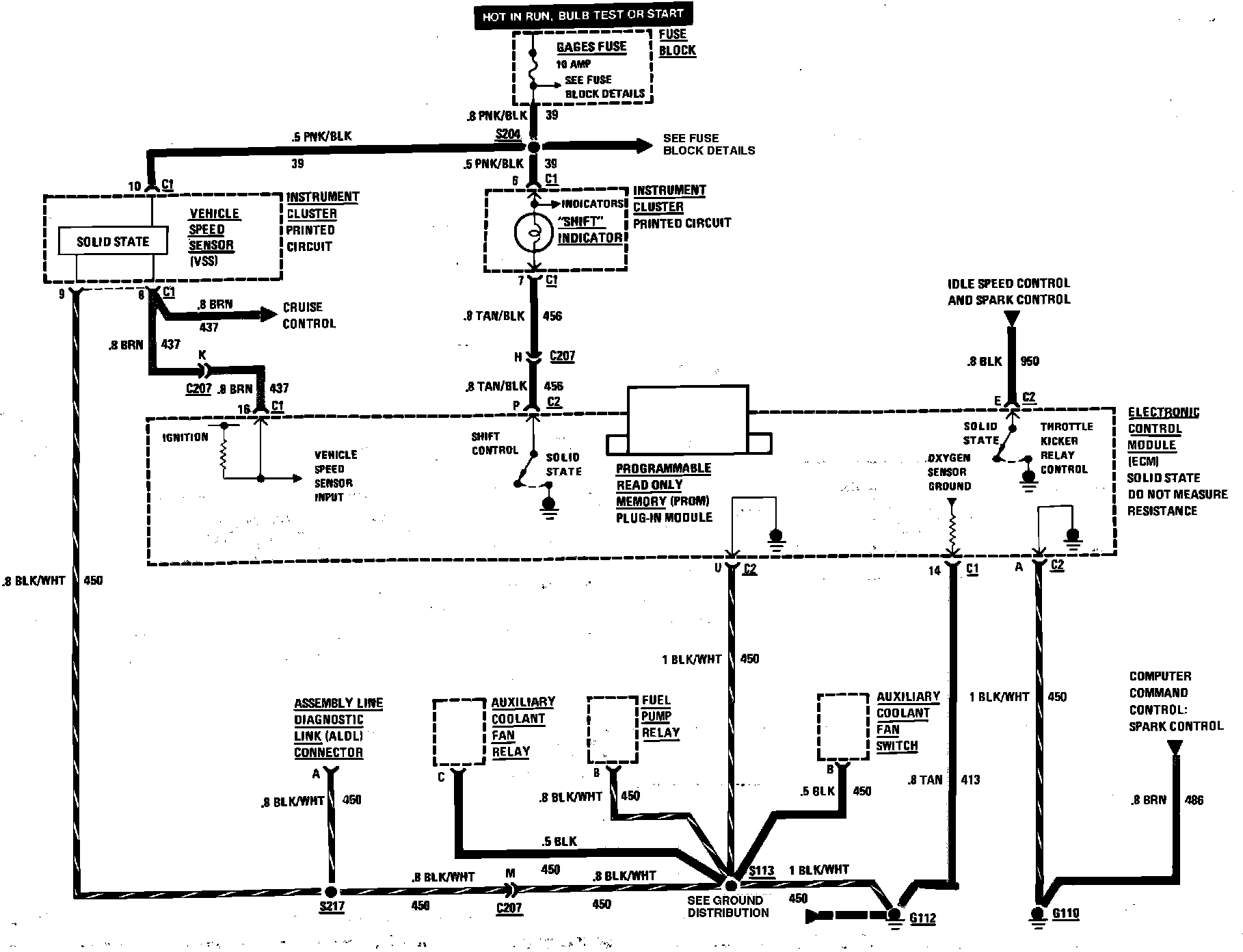 Computer Command Control Wiring Circuit (Vehicle Data Sensor). W/V8-305/5.0L (VIN G):
