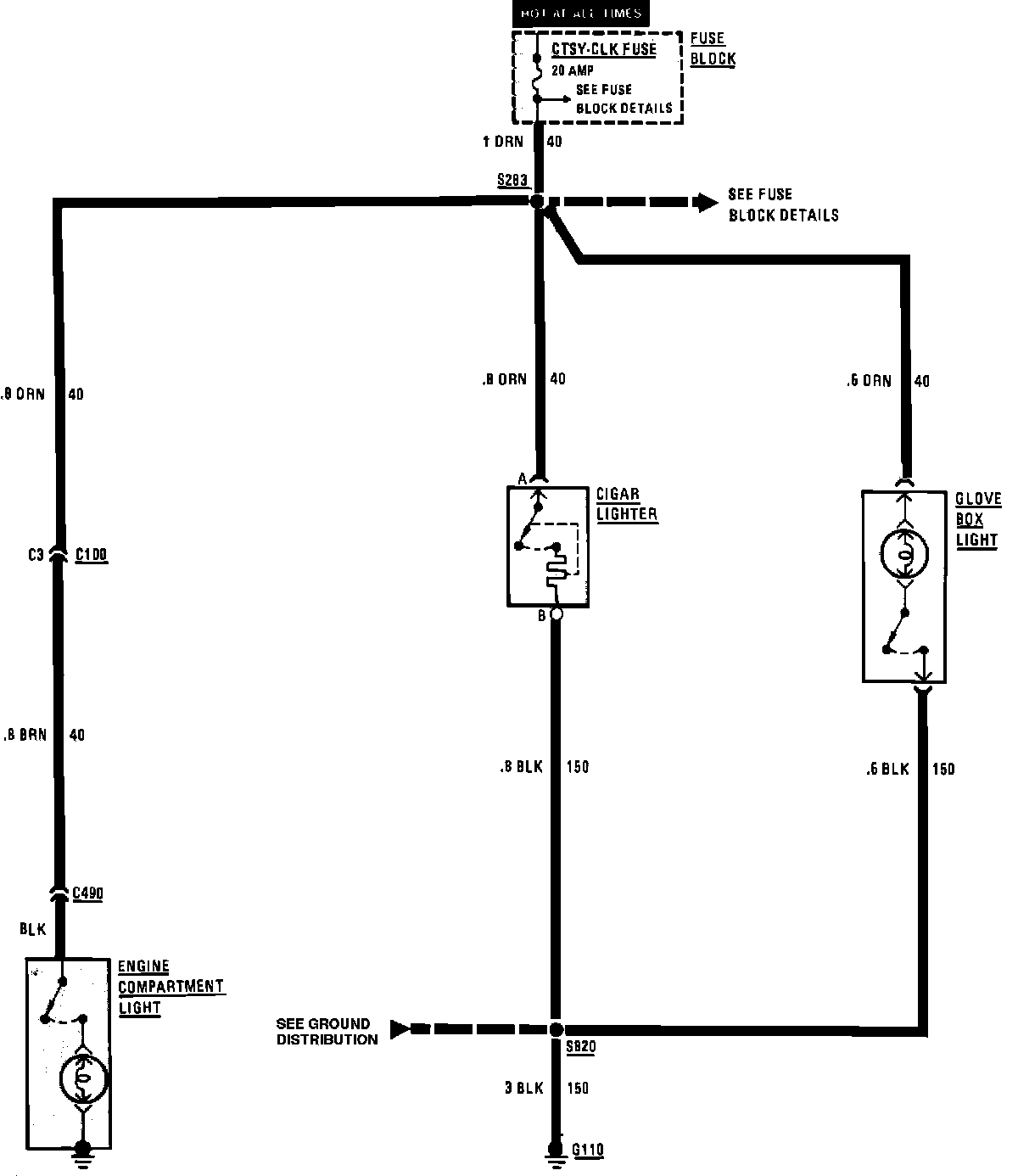 Cigar Lighter, Engine Compartment Lamp & Glove Box Lamp Wiring Circuit:
