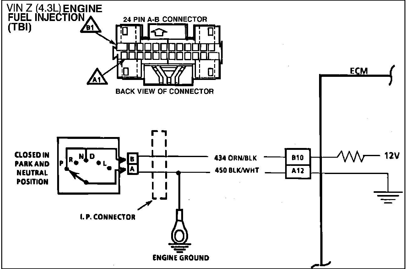 Circuit Description: The Park/Neutral switch contacts are a part of the Neutral Start switch and are closed to ground in park or neutral, and open in drive ranges.