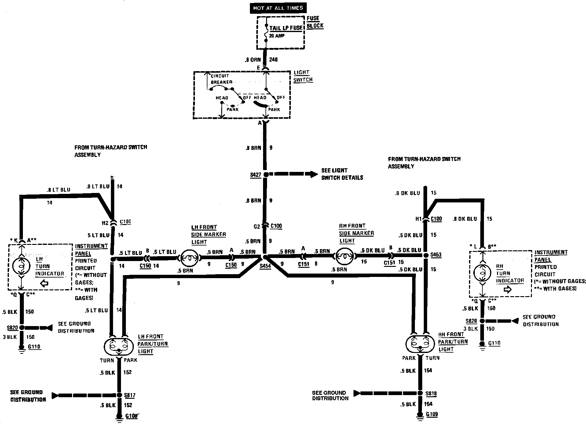 Exterior Lamps Wiring Circuit (Front Marker, Hazard, Park, Stop & Turn):