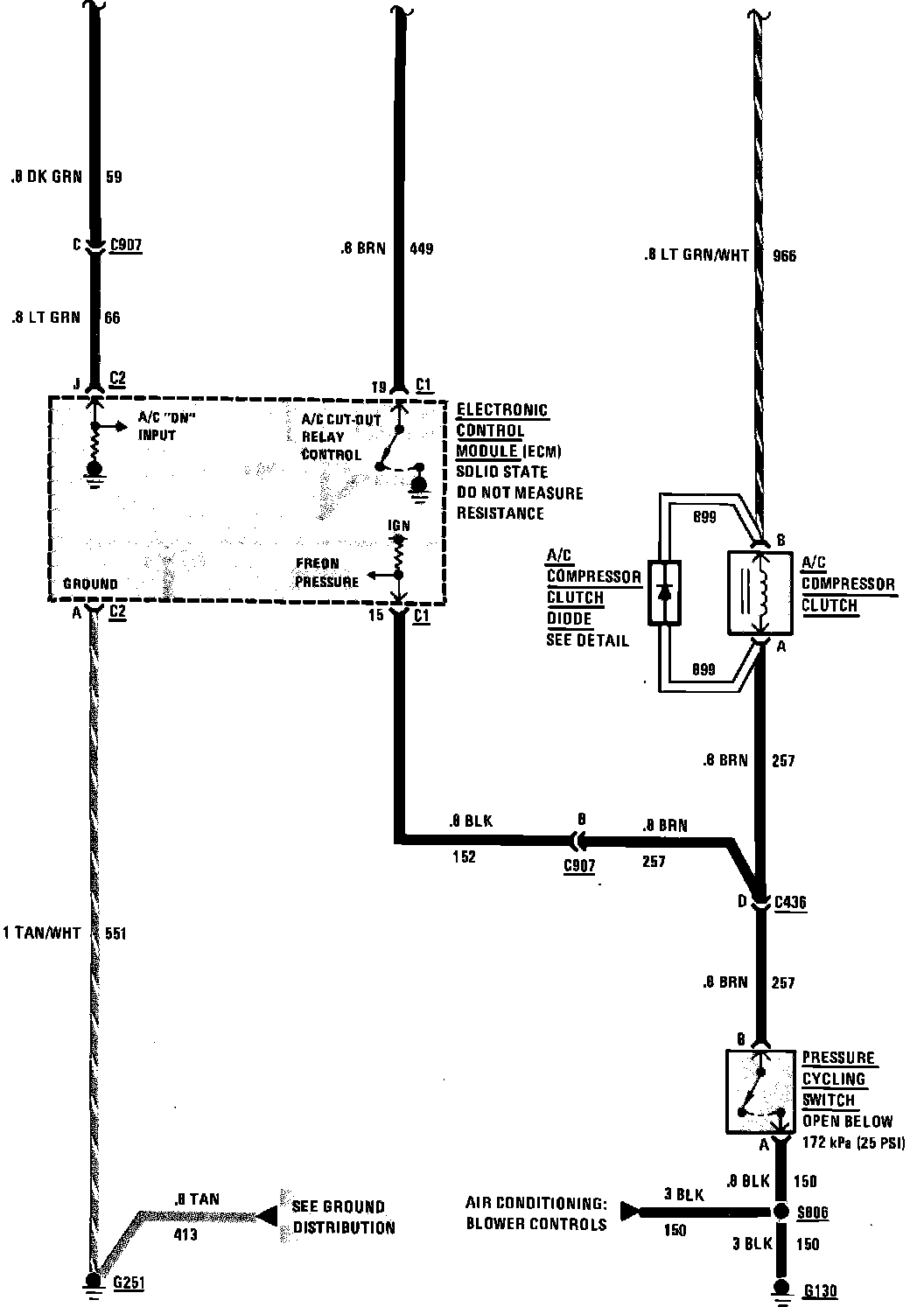 A/C Compressor Controls Wiring Circuit (V8-307/5.0L VIN Y Engine) W/Manual A/C: