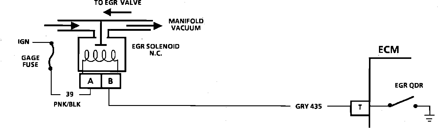 1. By grounding the diagnostic terminal, the EGR solenoid should be energized and allow vacuum to applied to the EGR valve and the vacuum should hold.