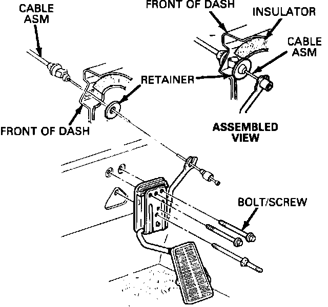 7. Install new accelerator control cable by reversing the removal procedure. Observe the following during installation of the new cable: