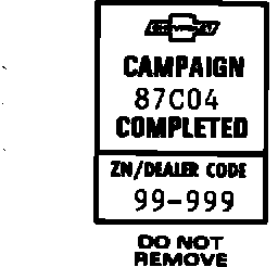 Each vehicle corrected in accordance with the instructions outlined in this Product Campaign Bulletin will require a "Campaign Identification Label." Each label provides a space to include the five digit dealer code of the dealer performing the campaign service. This information may be inserted with a typewriter or ballpoint pen.