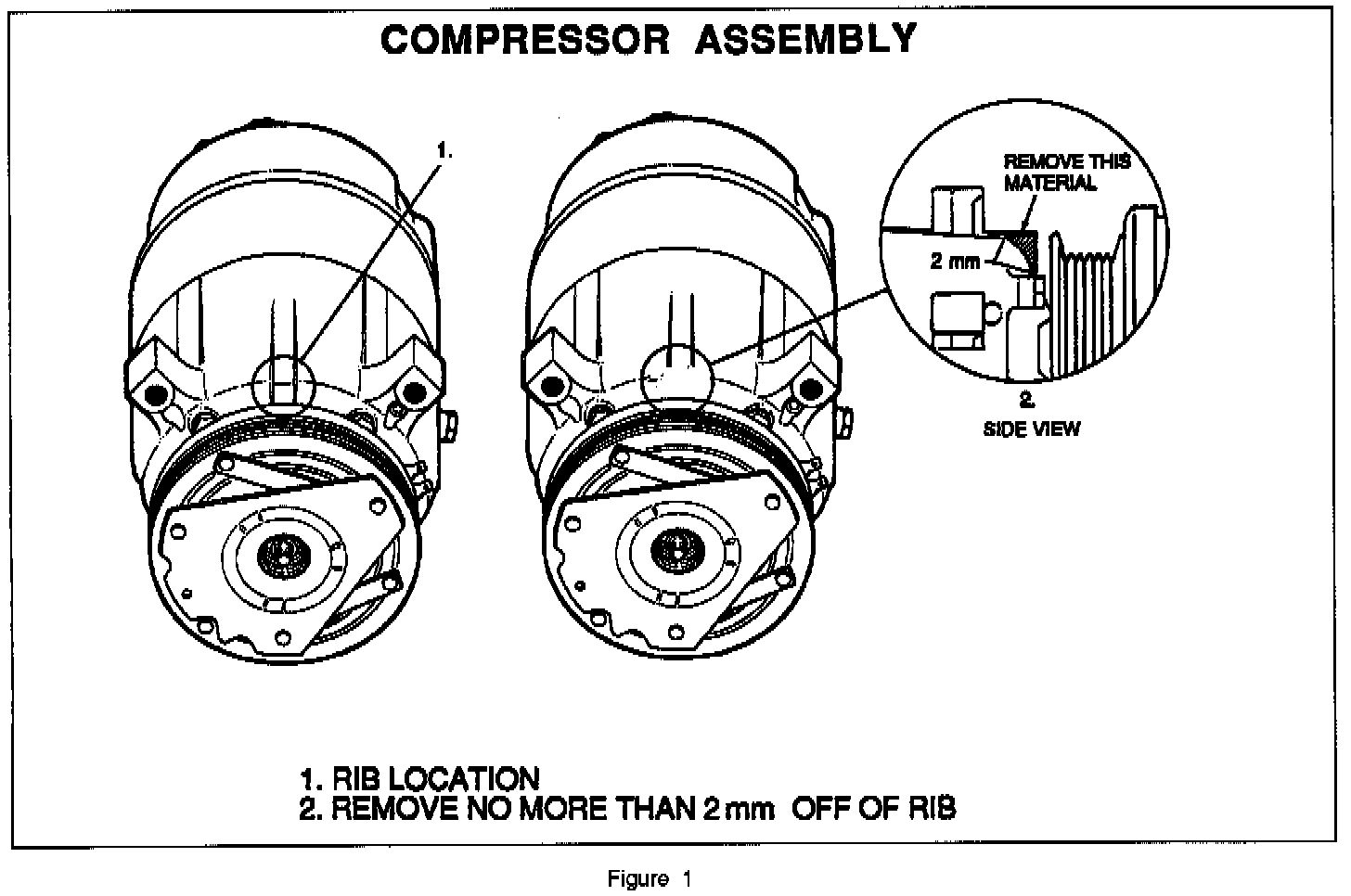 Grind a small section of the rib removing no more than 2mm or 0.08 inch, until rib is flush with the surface of the compressor body. Refer to the illustration. DO NOT GRIND INTO COMPRESSOR BODY. Install using the procedures found in the appropriate Service Manuals.
