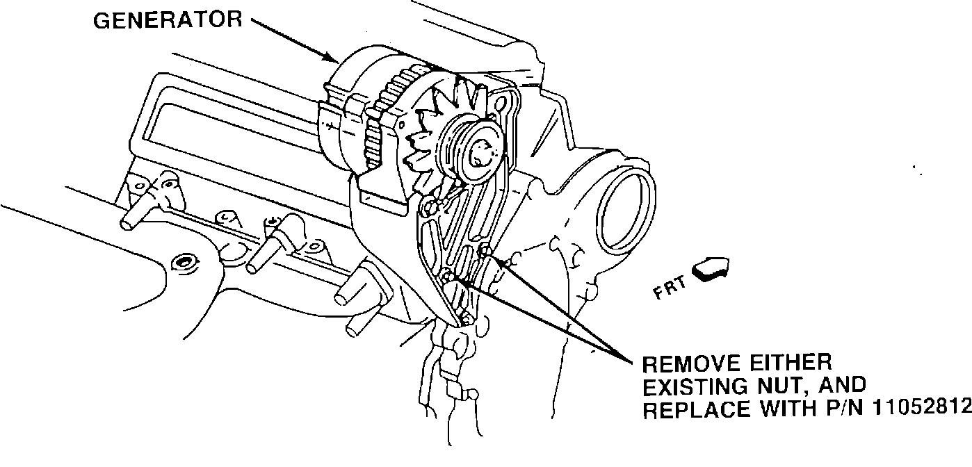 Cause: The generator may have an insufficient ground path to the engine block. The aluminum bracket is mounted to a painted steel engine lift hook, and the fasteners are phosphate coated (black color, poor conductor). Under this condition, the generator is working properly although the voltage to the battery is reduced, which can cause the battery to be undercharged.