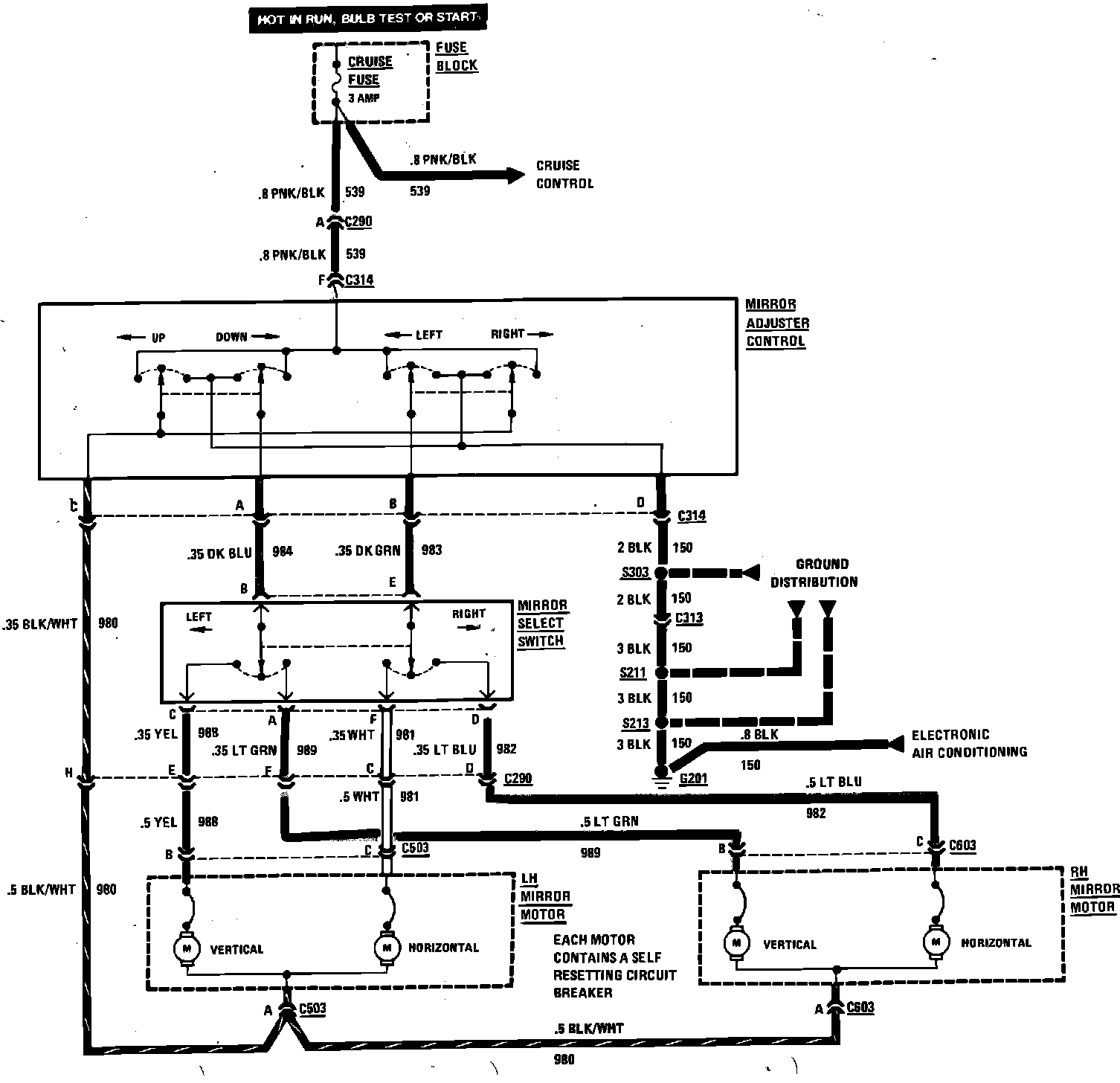 Power Mirrors Wiring Circuit.: