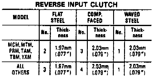 The following reverse input clutch backing plate selection procedure is for transmissions built after February 9, 1987: