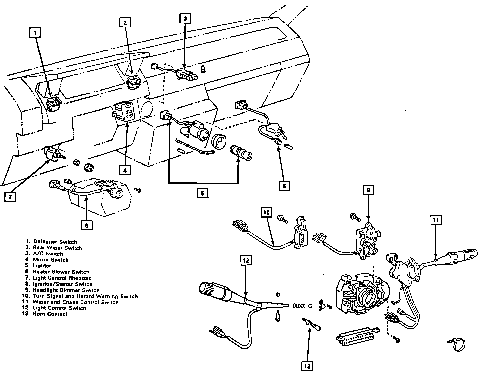 Instrument panel switches & relays: