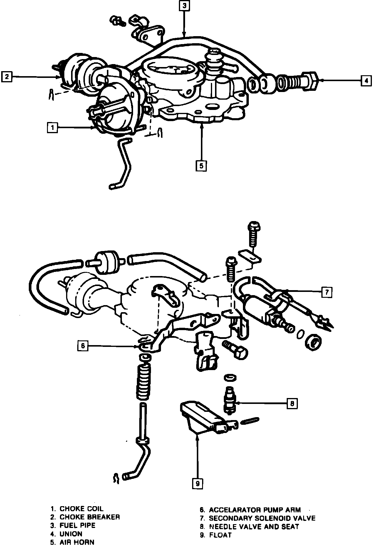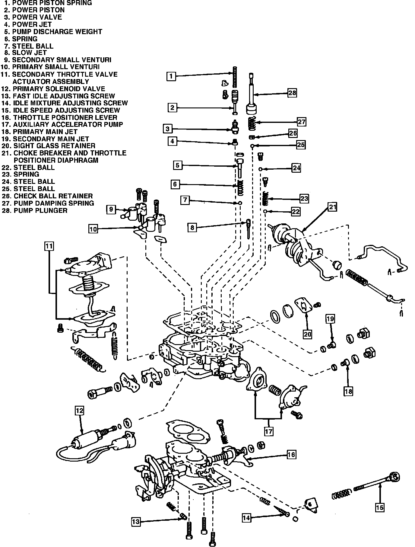 Fig. 1b Exploded view of Aisin two barrel carburetor (Part 2 of 2):