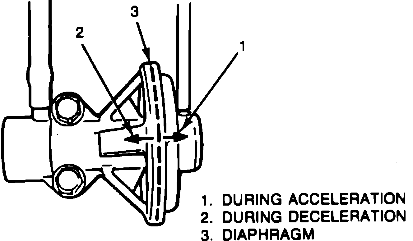 2. Allow engine to reach normal operating temperature. Race engine and check that diaphragm moves toward 1, Fig. 13, during acceleration and toward 2 during deceleration.