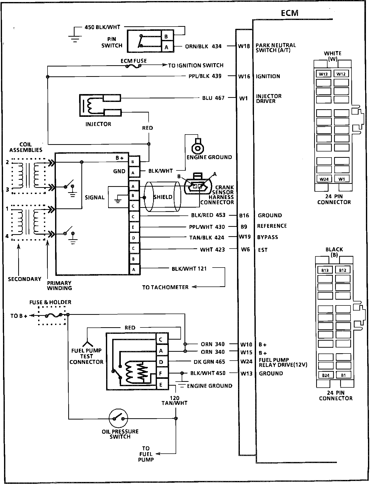 W24 = FUEL PUMP RELAY DRIVE (12V)