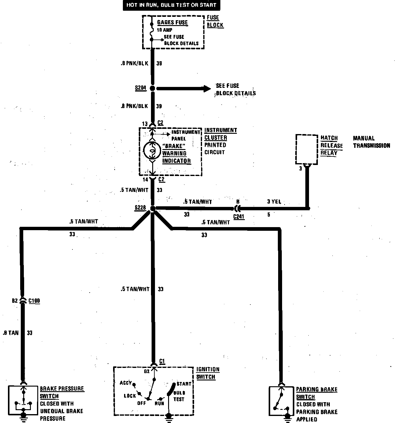Brake Warning System Wiring Circuit: