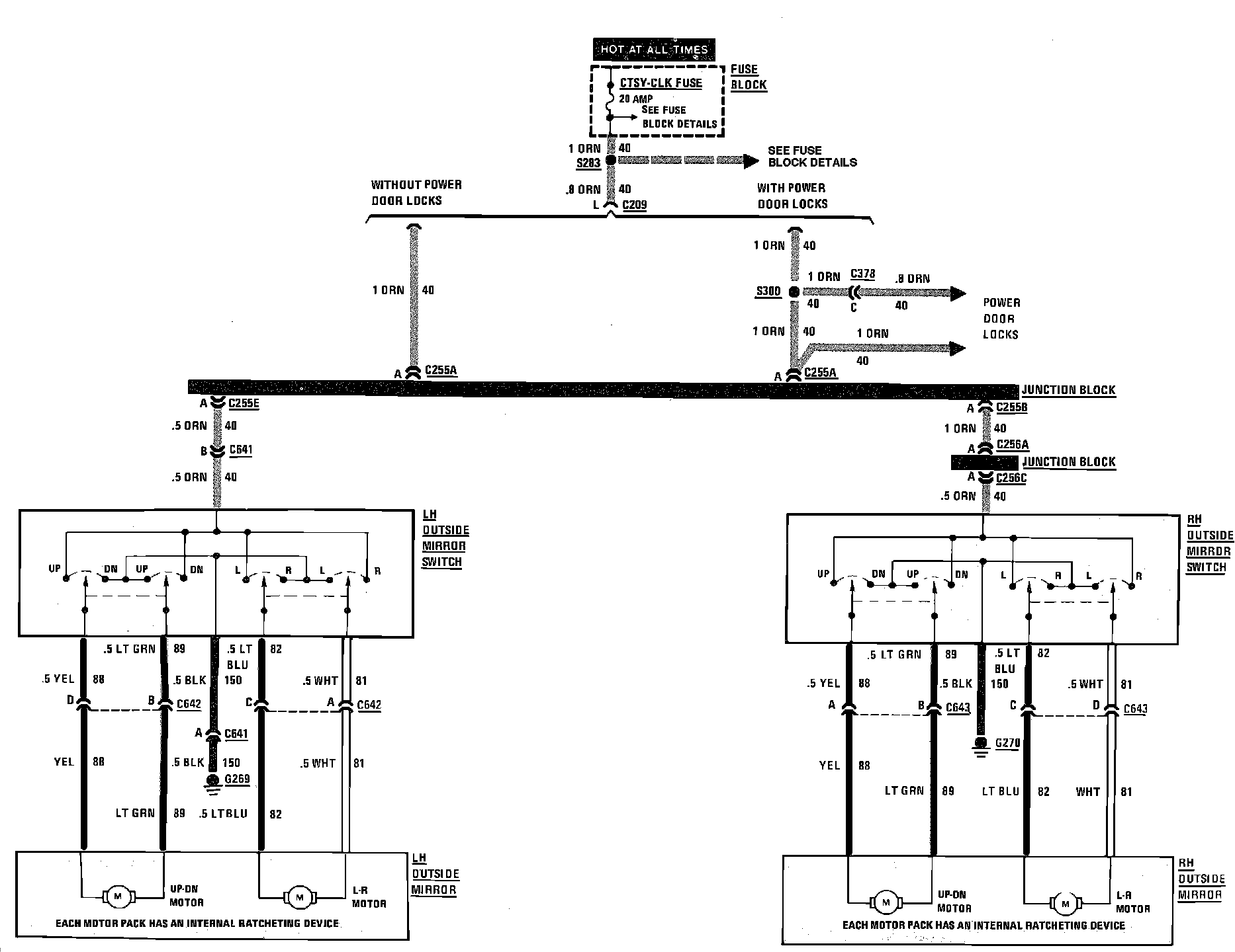 Power Mirrors Wiring Circuit: