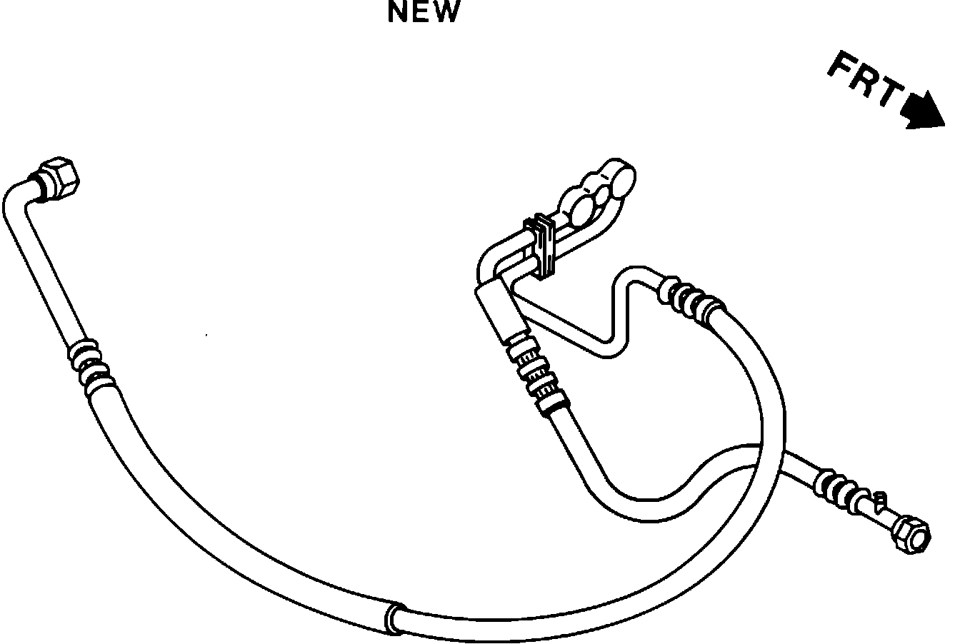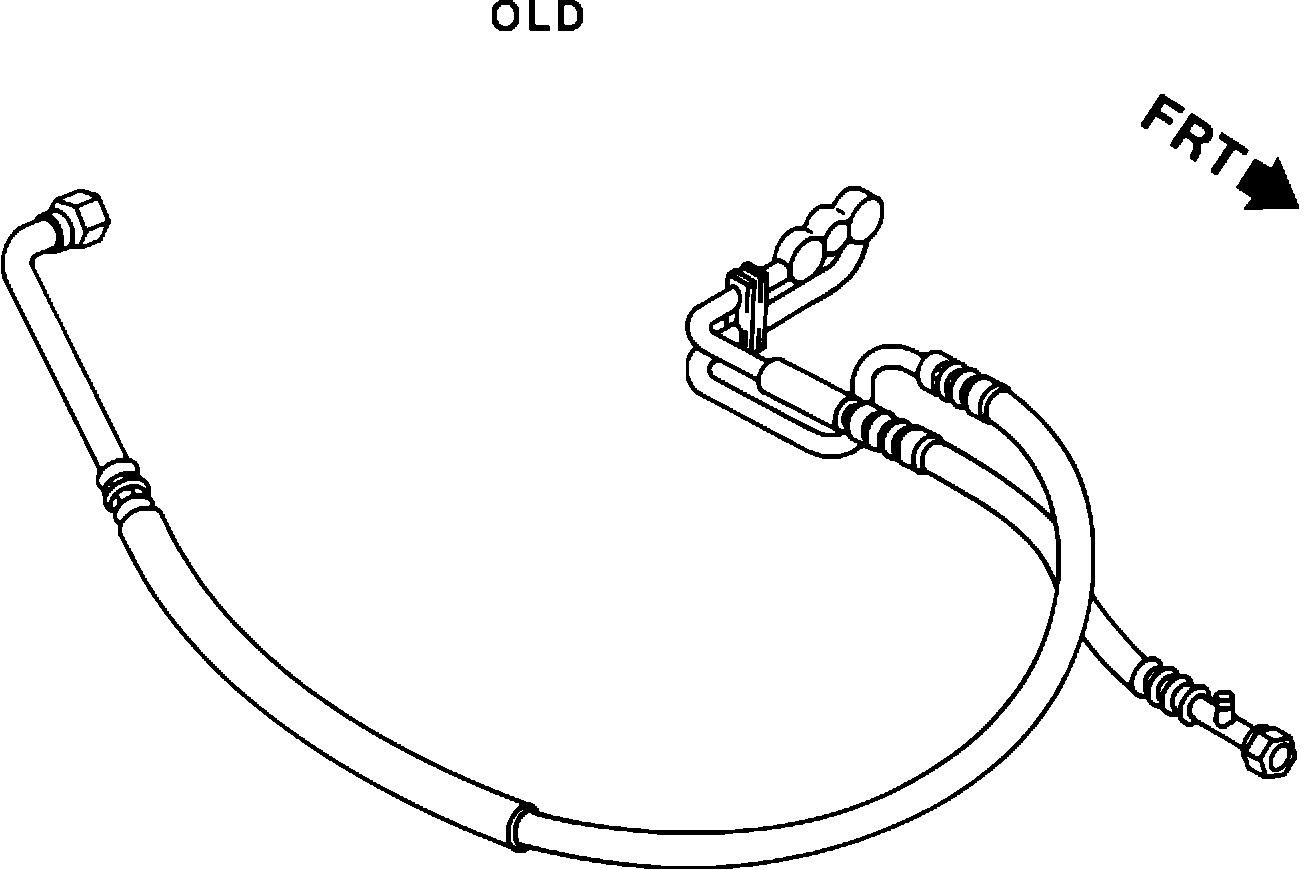 1. Inspect for previously replaced compressor discharge hose/pipe assembly. Illustrations of the old and new style compressor discharge hose/pipe assemblies are shown on the next page. If a new style compressor discharge hose/pipe assembly HAS been previously installed, install Campaign Identification Label and return vehicle to the owner or to dealer stock. If a new style compressor discharge hose/pipe assembly HAS NOT been previously installed proceed with steps 2 and 3 below.