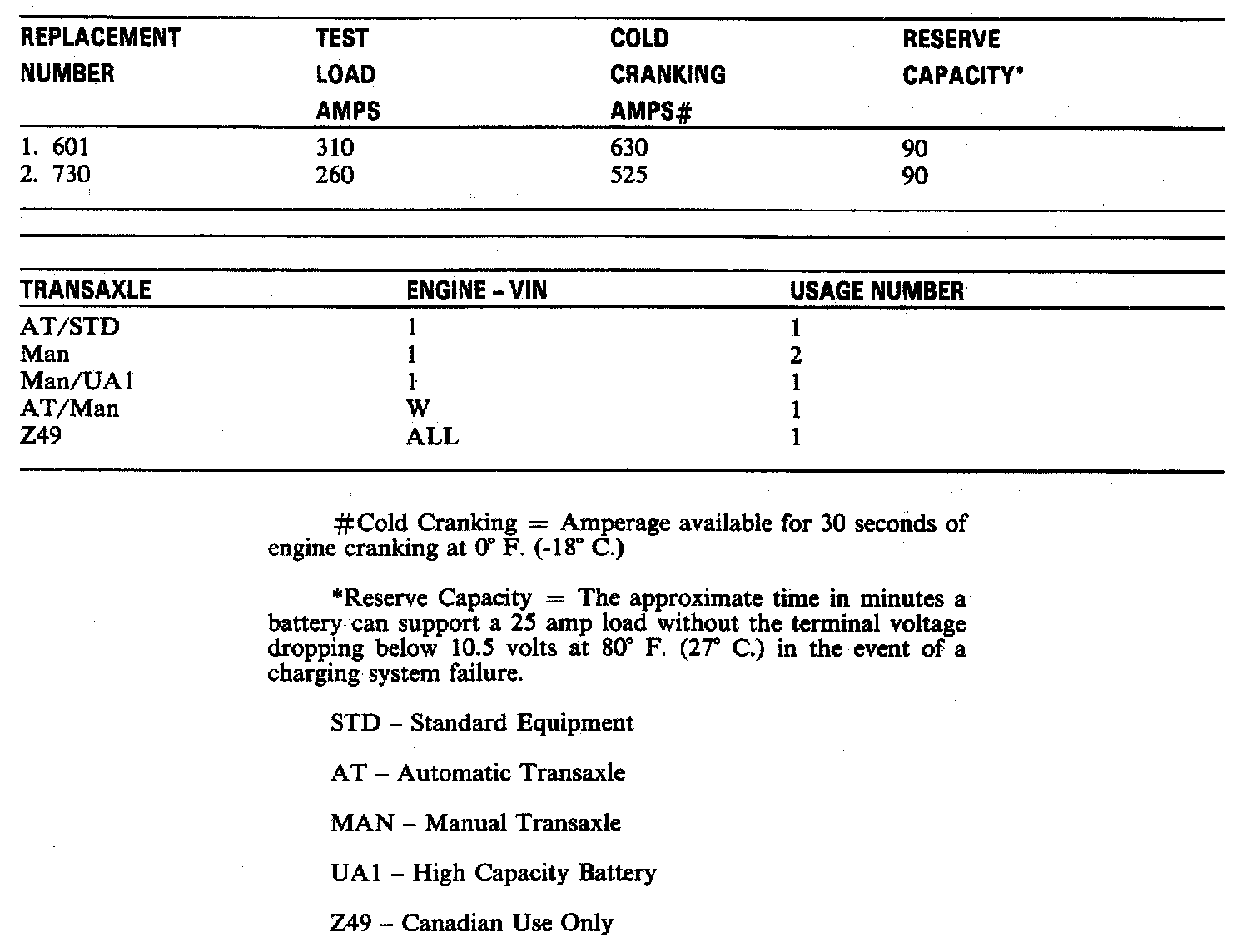 Starting and Charging: Specifications