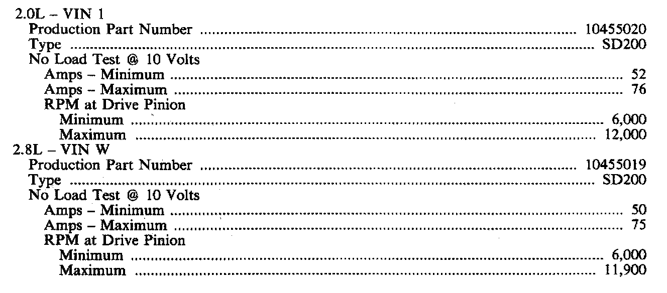 STARTER SPECIFICATIONS