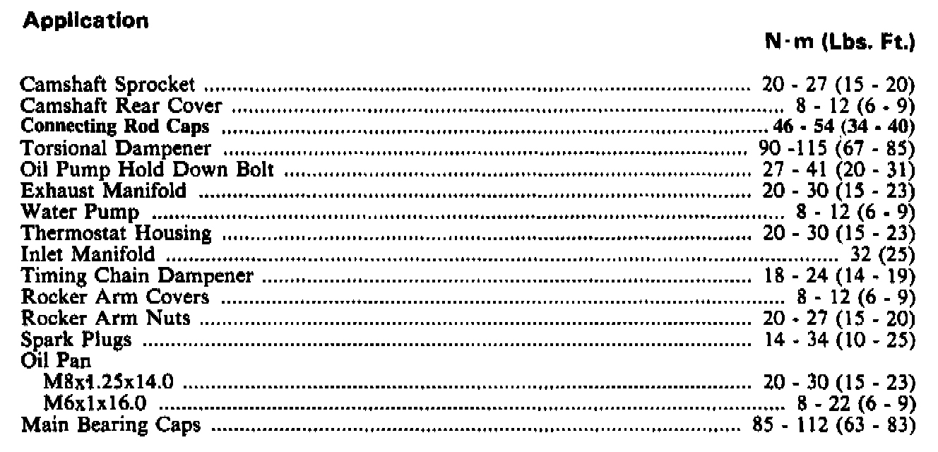 Torque Specifications: