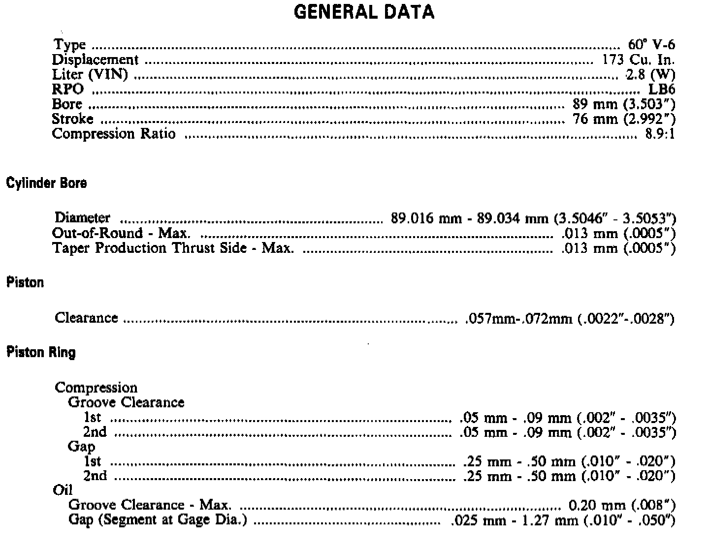 Cavalier/Z24 V6-173 2.8L
