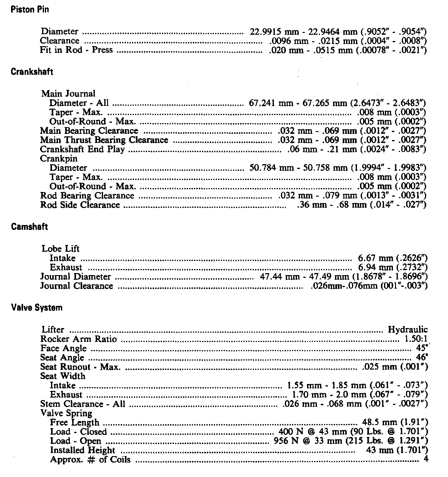 Engine Specifications: