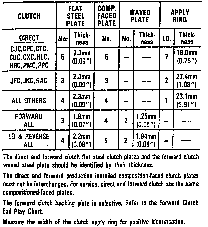 Fig. 51, Clutch plate & apply ring usage chart. 1987-88 units: