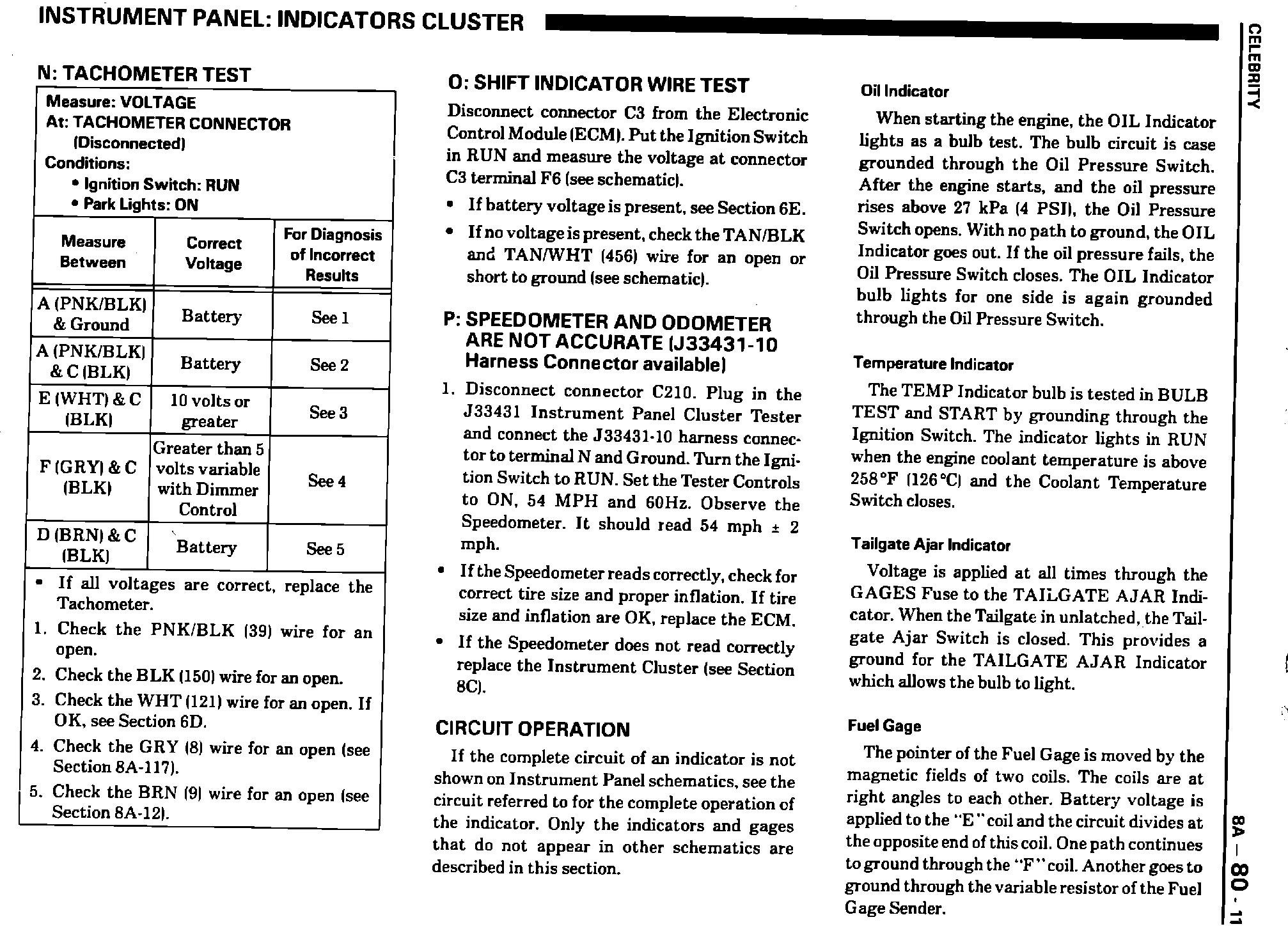 The reverse side of this bulletin contains a replacement for page 8A-80-11 of the 1988 Celebrity Service Manual. Please record the information as referenced in this bulletin in your manual for future use.