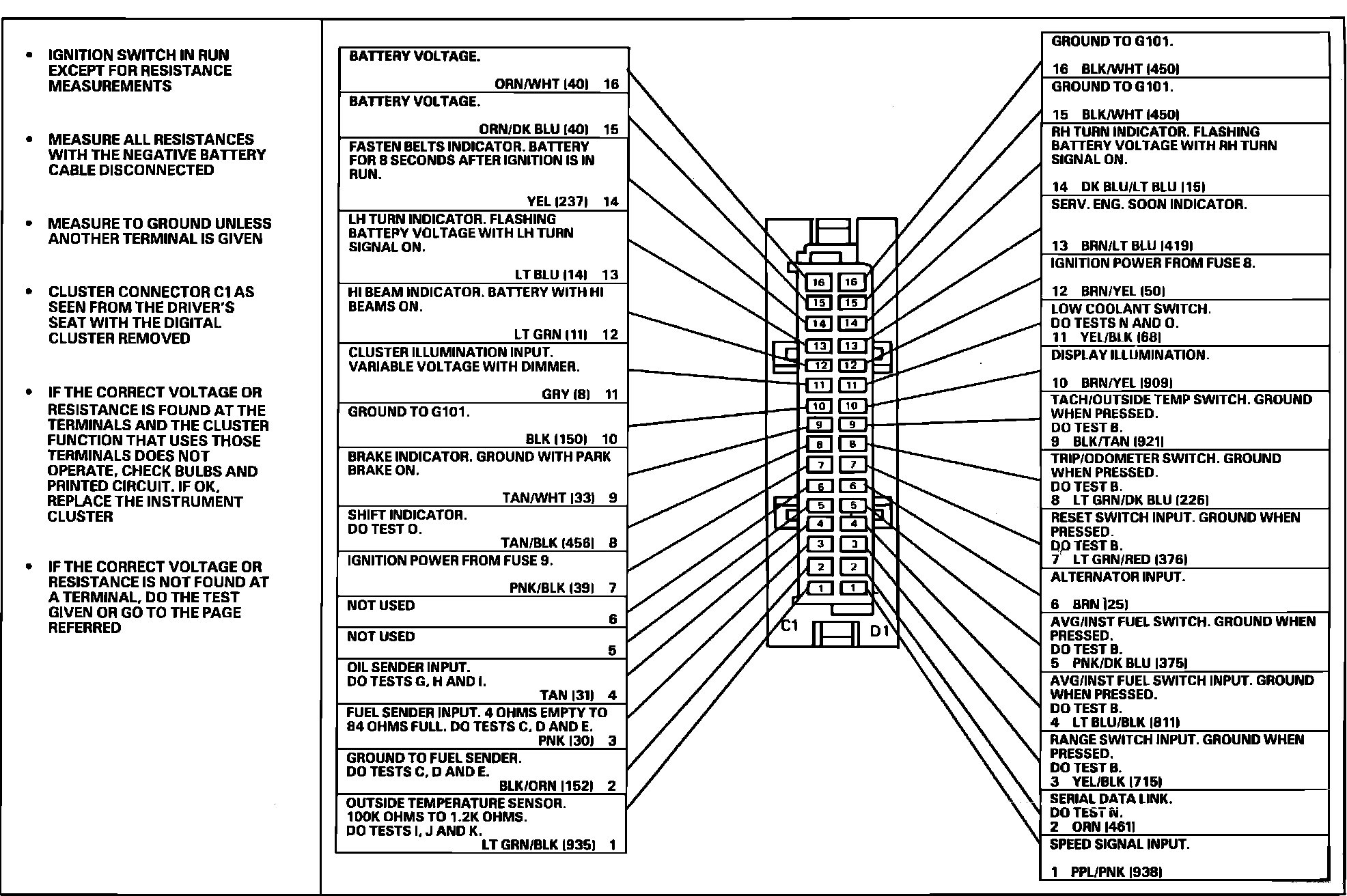 Connector C1 Pin out Test: