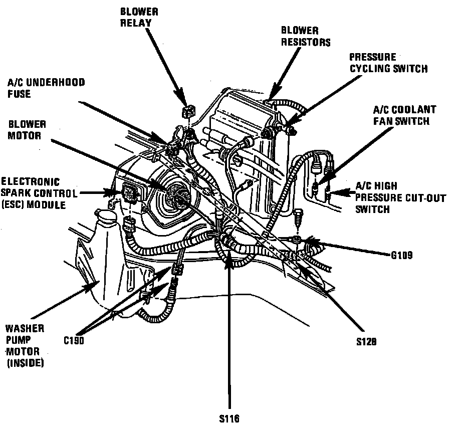 RH Front Of Dash, Above Blower Motor