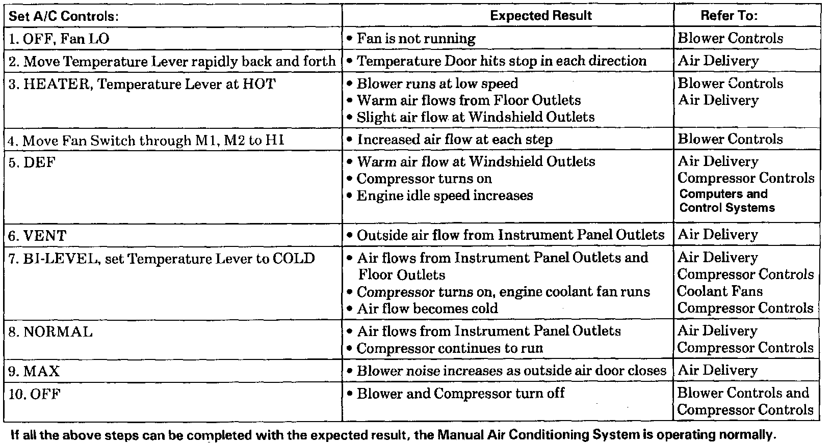 This procedure provides an overall check of the air conditioning system. All of the tests can be performed without using tools or disassembly.