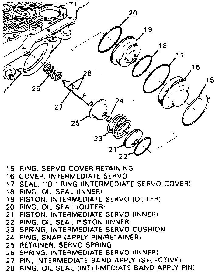 7. Lubricate the piston oil seals with Transjel, then install the intermediate servo assembly.