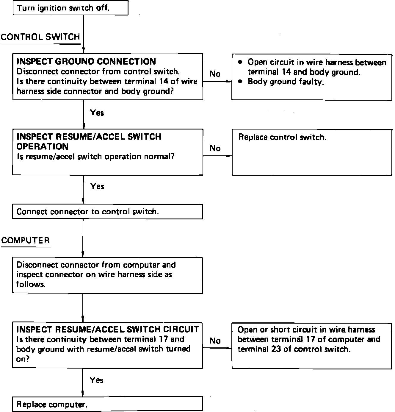 "C" Resume/accel Switch Circuit Inspection: