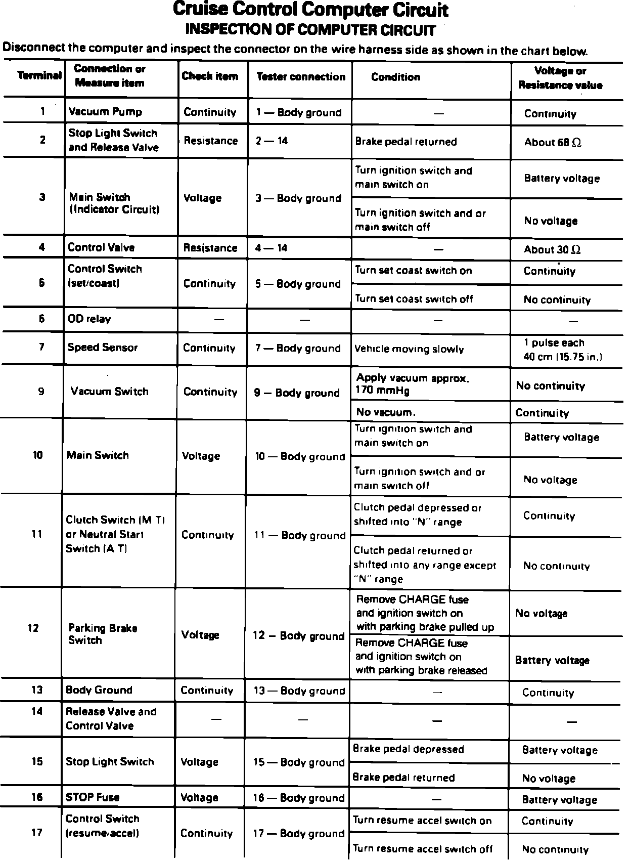 Cruise Control Computer Circuit Inspection: