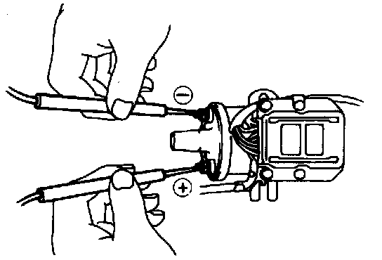 2. Using an ohmmeter, measure the resistance between the positive and negative terminals. Primary coil resistance (cold) should be 0.5 - 0.7 ohms.