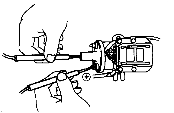 3. Using an ohmmeter, measure the resistance between the positive terminal and high-tension terminal. Secondary coil resistance (cold) should be 11 - 16 K ohms.